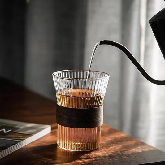 Glass Coffee Mug with Wooden Anti-skid Ring | Lead-Free Premium Drinking Glassware