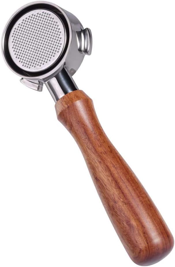 Wooden Handle: Bottomless portafilter with wooden handle, ergonomic design, comfortable grip, and provides stable handling, easy to use, and clean.